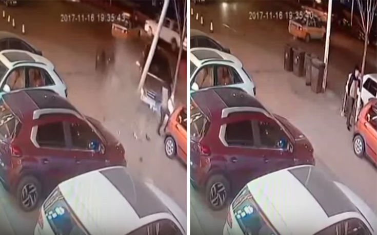 Ενώ περπατούσε σε ένα πάρκινγκ αμέριμνος, ξαφνικά κινείται προς τα πάνω του ένα αυτοκίνητο με ταχύτητα. Και ενώ γλιτώνει από αυτό, λίγα εκατοστά δίπλα του πέφτει ένα δέντρο από τη σύγκρουση.