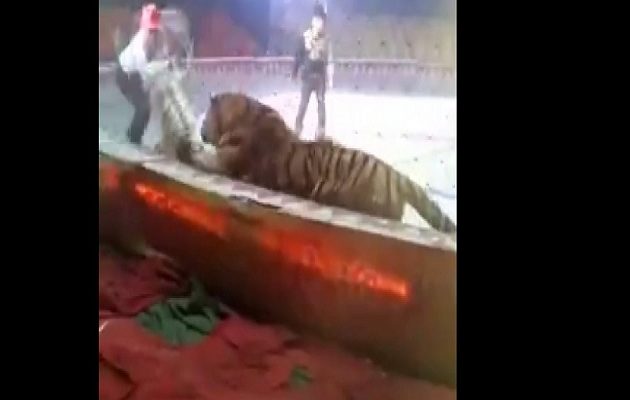 «Τα ζώα δεν συνεργάστηκαν καλά. Το άλογο κλώτσησε το λιοντάρι κι εκείνο άρχισε να το δαγκώνει», δήλωσε εκπρόσωπος του τσίρκου. Όπως θα δείτε στο βίντεο, οι θηριοδαμαστές προσπάθησαν με μαστίγια να απομακρύνουν τον τίγρη και το λιοντάρι και μετά από αρκετή προσπάθεια τα κατάφεραν.