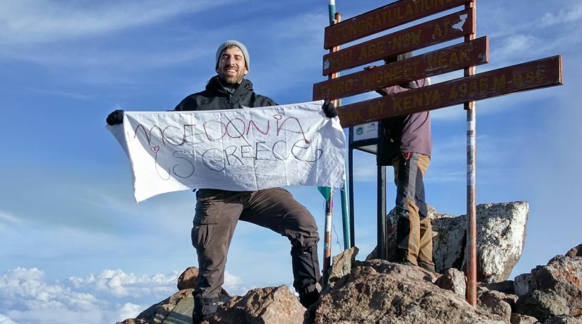 Ο δικηγόρος Γιώργος Κράτσας και δεινός ορειβάτης βρέθηκε στην Κένυα και ανάρτησε το πανό σε μια από τις υψηλότερες κορυφές του όρους
