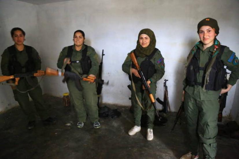 Αυτές οι γυναίκες στο Αφρίν έρχονται αντιμέτωπες καθημερινά με του Τούρκους στρατιώτες. Είναι η ομάδα των γυναικών που αντιστέκεται στην κατάκτηση και που αναγκάζεται να αμυνθεί στους Τούρκους παίρνοντας μέρος στις αιματοχυσίες.