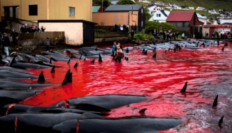 Κόκκινη έγινε η θάλασσα στα νησιά Φερόε κάθως οι κάτοικοί τους για άλλη μια χρονιά οδήγησαν περισσότερες από 180 φάλαινες στα ρηχά προκειμένου να τις σκοτώσουν ενόψει του δύσκολου χειμώνα στα απομονωμένα νησιά του Ατλαντικού.