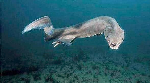 Εξαιρετικά σπάνιο είδος καρχαρία, που θυμίζει χέλι, κολυμπά στα βάθυ των ωκεανών από την εποχή των δεινοσαύρων. Τρέφονται κυρίως με καλαμάρια και μπορούν να φτάσουν μέχρι τα 2 μέτρα μήκος. Τι άλλο γνωρίζουμε γι’ αυτόν; Μόνο ότι διαθέτει 300 δόντια (που μοιάζουν με τρίαινες) κατανεμημένα σε 25 σειρές.