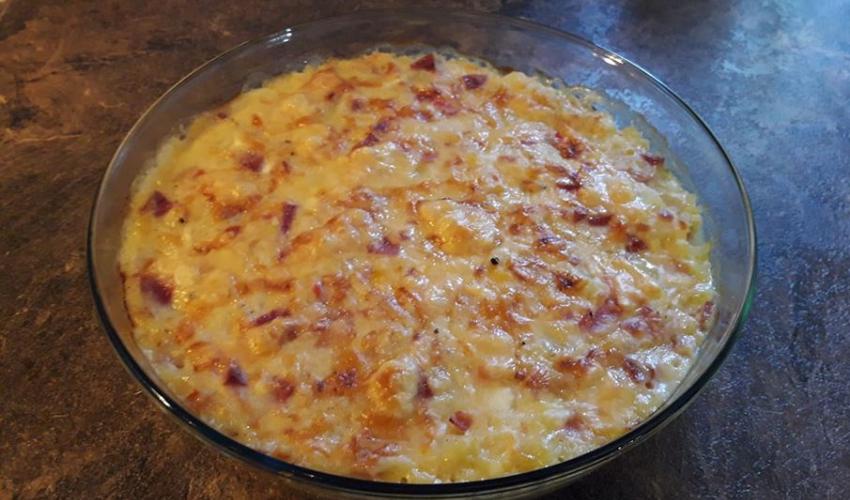 Ανακατεύεις και προσθέτεις το μίγμα σε ελαφρά βουτυρωμένο πυρέξ.