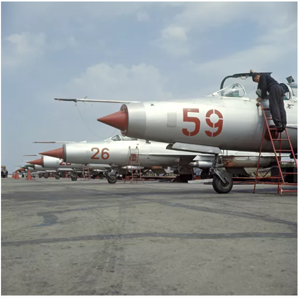 © RIA Novosti / Mikhail Kukhtarev. Μαχητικά MiG-21 σε αεροδρόμιο. 1970. Το 1967, στον Πόλεμο των Έξι Ημερών μεταξύ του αραβικού συνασπισμού και του Ισραήλ, τα MiG πολέμησαν με τα Mirage. Οι Αιγύπτιοι πιλότοι κατάφεραν να καταστρέψουν μόνο δέκα εχθρικά αεροπλάνα, χάνοντας 19 μηχανές στη διαδικασία. Το Ισραήλ είχε πλήρη αεροπορική υπεροχή - σχεδόν ολόκληρος ο στόλος της αιγυπτιακής πολεμικής αεροπορίας είχε συντριβεί στο έδαφος, με λίγες μόνο μοίρες σε ετοιμότητα μάχης. Επιπλέον, το επίπεδο της εκπαίδευσης των Αράβων πιλότων άφηνε πολλά περιθώρια για να το επιθυμήσουμε. Στη συνέχεια, το εικοστό πρώτο πολέμησε στο Αφγανιστάν, τη Λιβύη, τη Γιουγκοσλαβία, την Αγκόλα και τα ινδο-πακιστανικά σύνορα. Συνολικά, περισσότερα από 11 χιλιάδες MiG-21 και τα ξένα αντίγραφά τους βγήκαν από τη γραμμή συναρμολόγησης. Το μαχητικό ήταν σε υπηρεσία σε περισσότερες από πενήντα χώρες.