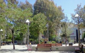 Η πλατεία Γαρδένιας (πλατεία Αλεξανδρή) όπως είναι σήμερα. Στο βάθος φαίνεται ο δημοτικός κινηματογράφος «ΑΛΕΚΑ»