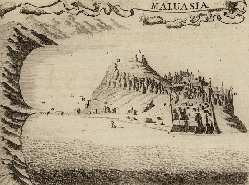 Άποψη της Μονεμβάσιας, όπου επισημαίνονται σημεία στρατηγικής σημασίας για την πολιορκία της πόλης από τους Βενετούς το 1685